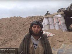 Один из боевиков встал в красивую позу перед телекамерой одиозного репортера Ахмед Абу Хамза (Ahmed Abu Hamza), который известен тем, что работал на исламистские террористические группировки.