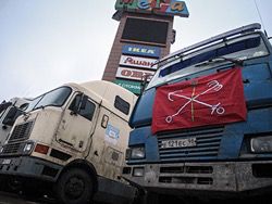 Также он разместил фотографии стоянки около торгового центра МЕГА Химки. Там дальнобойщики организовали протестную стоянку.