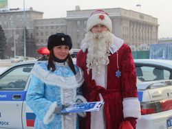 Как рассказала «Комсомольской правде» — Новосибирск» пресс-служба городской Госавтоинспекции, на площади Ленина сотрудница ГИБДД вместе с корреспондентом одного из региональных изданий в нарядах Снегурочки и Деда Мороза общались с водителями. Они просили их не садиться пьяными за руль, быть аккуратными и на дороге, соблюдать ПДД, а также раздавали памятки, световозвращатели и поздравительные открытки. Кроме того, за правильные ответы на вопросы экспресс-викторины по ПДД водители получали сладкие призы.