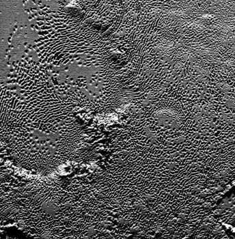 На снимках запечатлено Сердце Плутона, или регион Томбо (Tombaugh Regio), — область на поверхности карликовой планеты, напоминающая по форме сердце. Этот участок испещрён загадочными впадинами. Учёные полагают, что они сформировались в результате растрескивания и испарения льда. Причём соответствующие процессы, по всей видимости, происходили сравнительно недавно.