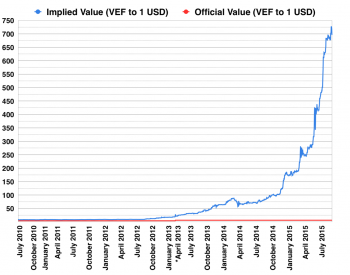 как видите, при официальном курсе 6,3 боливара за доллар, неофициальный согласно англоязычной вики рвется вверх и в июле был более 600. Вот еще статья от 6 августа, где курс уже 696 боливаров за доллар на черном рынке. Но пасаран, как говорится.