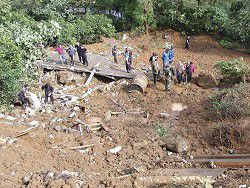 Оползень «вдавил» жилые дома на глубину около 60 метров, попутно превратив постройки в руины. Спасателям удалось обнаружить тела 131 жителя злополучного поселка.На месте происшествия работают по меньшей мере 1800 человек. Разбирать завалы спасателям помогают сотрудники полиции и «Красного креста», а также 190 собак-поисковиков.