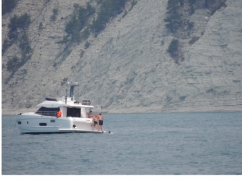 «На днях мне прислали любопытный фоторепортаж о том, как человек, похожий на патриарха Кирилла, лихо рулит яхтой Azimut (так называется итальянская верфь, занимающая одно из ведущих мест в мире в области постройки эксклюзивных моторных яхт) в море между селами Джанхот и Дивноморское, в местечке, называемом Голубой Бездной. Фото сделал примерно месяц назад один из отдыхающих. По счастливой случайности пограничники в тот день почему-то не оберегали патриарший покой и не разгоняли экскурсионные катера», — пишет эколог. Он приводит цены на лодки Azimut — 680 тысяч евро.