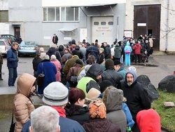 У складов «Банка продовольствия» (Maisto bankаs) в понедельник с самого утра выстроилась огромная очередь жителей Паневежиса. Здесь в 9 утра началась последняя в этом году акция раздачи продуктов из европейского фонда помощи нуждающимся, пишет Sekundе.