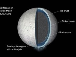Огромный подледный океан покрывает всю поверхность Энцелада, одного из спутников Сатурна. К такому выводу пришли астрономы, изучившие либрации (колебания при движении по орбите) Энцелада за много лет работы зонда Cassini. Об этом сообщается в пресс-релизе НАСА со ссылкой на статью в журнале Icarus.