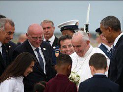 Самолет Папы приземлился примерно в 10 утра в аэропорту столицы Банги, где его встретили сановники, в том числе архиепископ Дьедонне Нзапалаинга. Десятки детей размахивали флагами с цветами Ватикана –желтым и белым. Перед его прибытием тысячи людей выстроились вдоль маршрута Франциска.