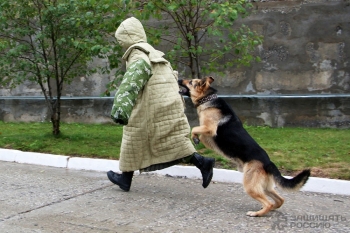 Корреспондент «ЗР», уже имеющий опыт работы со служебными собаками, на себе испытал хватку одной из лучших овчарок на «Хангихое».