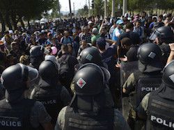 По его словам, столкновения с мигрантами начались около 14:20 по местному времени, беженцы начали кидать камни в полицейских, в ответ на что те применили газ, сообщает ТАСС.
