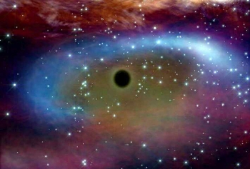 Сверхмассивная чёрная дыра потребляет материю вращающейся вокруг нее звезды (в представлении художника) Изображение: East News