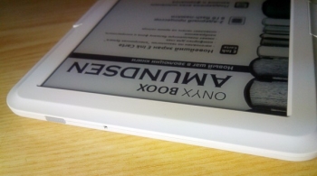 Ридер в белом цвете – это для российского рынка в общем и для нас в частности явление довольно редкое. Так уж сложилось, что в нашей стране в ходу гаджеты в темных цветах корпуса, и на то есть свои причины. Но белый ONYX BOOX Amundsen определенно смотрится весьма и весьма красиво и даже богато, так как именно ярко-белым цвет пластика все же не является – он больше похож на цвет слоновой кости. В общем, очень необычно, нам понравилось.
