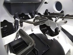 По словам представителей компании, внутреннее пространство корабля организовано с максимальным возможным удобством для экипажа. Так, кресла пилотов в нем выполнены из углеродного волокна высшего качества и с отделкой из алькантары.