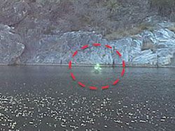 Очевидцы рассказали, что отдыхали в местечке Marble Falls. Фотографировали окрестности. Ничего сверхъестественного не заметили. А когда- потом просматривали сделанные кадры, то увидели нечто — какую-то зеленую сущность на поверхности воды.