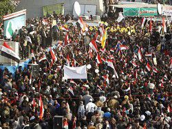 На площади находится по меньшей мере четыре тыс. человек, включая шиитских военных.