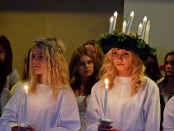 День Святой Люсии — праздник, отмечаемый в странах Северной Европы, в преддверии Рождества. По одной из легенд, жившая в начале IV века сицилианка Люсия была необычайно красива, и многие мужчины добивались ее благосклонности. Приняв христианство, девушка дала обет целомудрия и решила посвятить свою жизнь помощи бедным. Однако отвергнутые женихи решили отомстить праведнице. Люсию хотели отдать в публичный дом, но, как гласит легенда, никакие силы не могли сдвинуть девушку с места. После этого ее попытались сжечь, но огонь не загорался. В конце концов, ей отрубили голову.