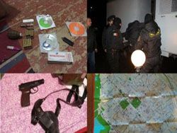 Во время обысков в домах, автомобилях, на складах, принадлежащих подозреваемым, были найдены оружие, форма военного образца, емкости со слезоточивым газом, значительные суммы денег, а также карты Бєльц и Кишинева, на одной из которых были обозначены пять объектов.