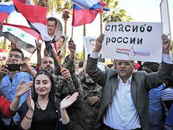 Около здания университета аль-Баас в Хомсе прошел митинг в поддержку операции российских ВКС.