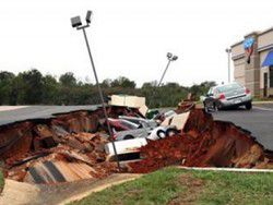 В городе Меридиан, штат Миссисипи, США, 12 автомобилей провалилось под землю на парковке возле ресторана IHOP.