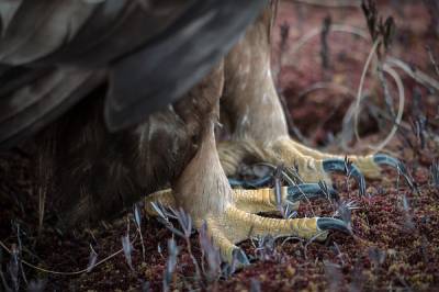 Величественная птица не таилась, не пыталась отойти. Она только не спускала с меня глаз и предупреждающе раскрывала смертоносный клюв. Кажется, еще один шаг и он кинется на меня, защищаясь. Ярость и злость на человека, красота могучей силы и гордости исходили от орла. Желание сфотографировать птицу, сожаление и чувство вины за беспокойство боролись во мне.