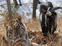 Тимур и Амур живут в Приморском сафари-парке. Об их дружбе стало известно 26 ноября, когда козла привели тигру на съедение, но тот не стал этого делать. Животные подружились и до сих пор проводят время вместе.