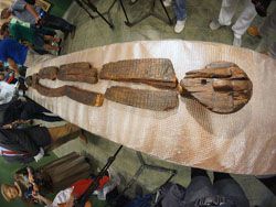 Год назад в Екатеринбург прибыли два профессора — Уве Хойснер из Берлинского археологического института, один из лучших специалистов в мире по древнему дереву, и Томас Тербергер из Ганновера, специалист по ускоренной масс-спектрометрии, единственном современном способе получения достоверных дат. Отобрали семь микрообразцов, менее 0,3 грамма каждый (два грамма, в общей сложности).