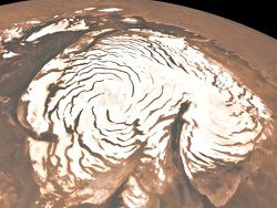 Ранее планетологи предполагали, что полюса Марса содержат в себе замороженную двуокись углерода и воду. Теперь догадки подтверждены снимками.
