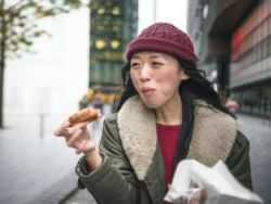 Согласно результатам нового исследования, употребление пищи на ходу может помешать людям сохранить здоровый вес При исследовании с участием трёх групп (по 20 женщин в каждой) изучили, какие эффекты оказывает употребление пищи во время прогулки, просмотра телевизора или разговора. Было установлено, что женщины употребляют большее количество пищи, находясь в движении.