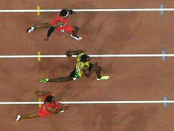 Болт ранее побеждал на 100-метровке на чемпионатах мира в Берлине (2009) и в Москве (2013).